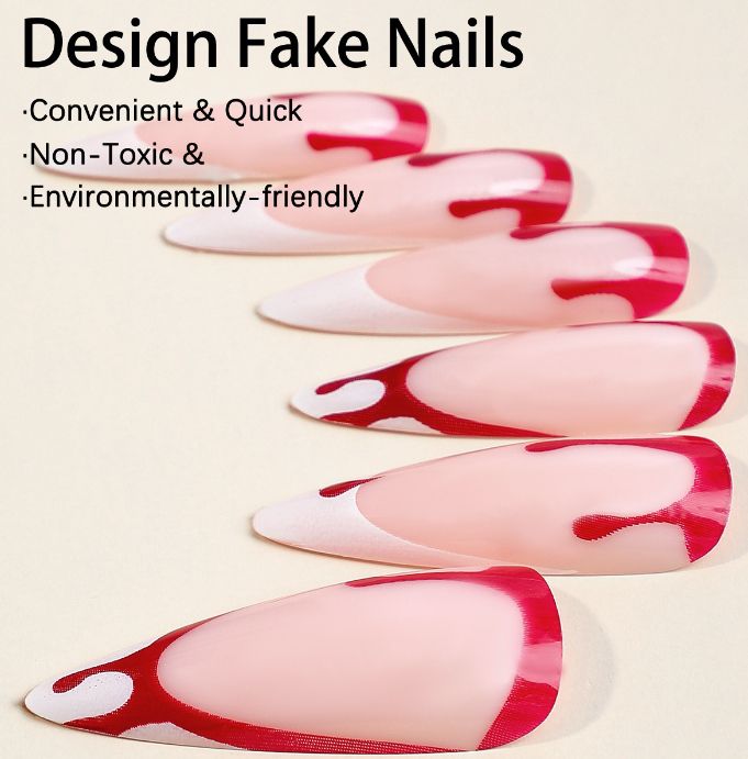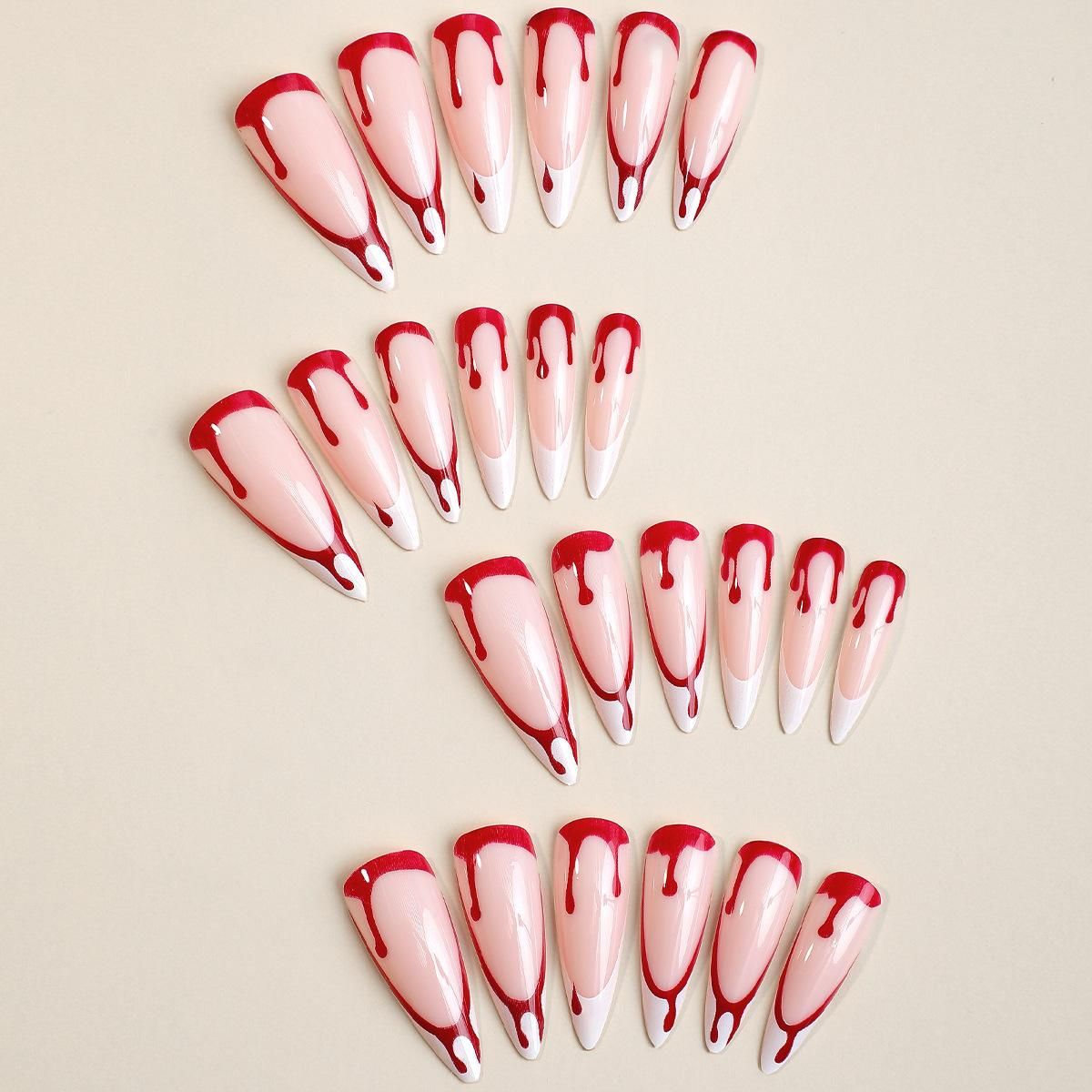 Wear Armor Halloween Day Long Pointed Wear Nail Tip Blood Drops White Side Detachable Fake Nail Patch