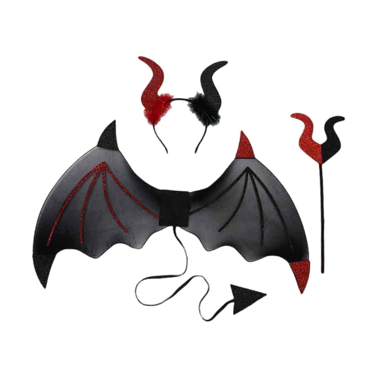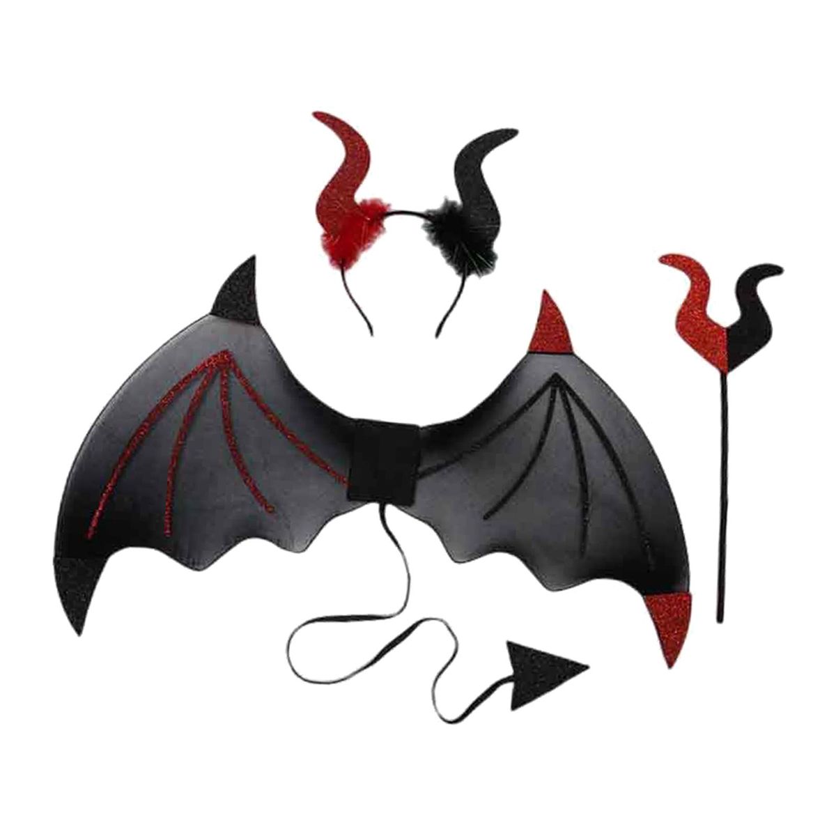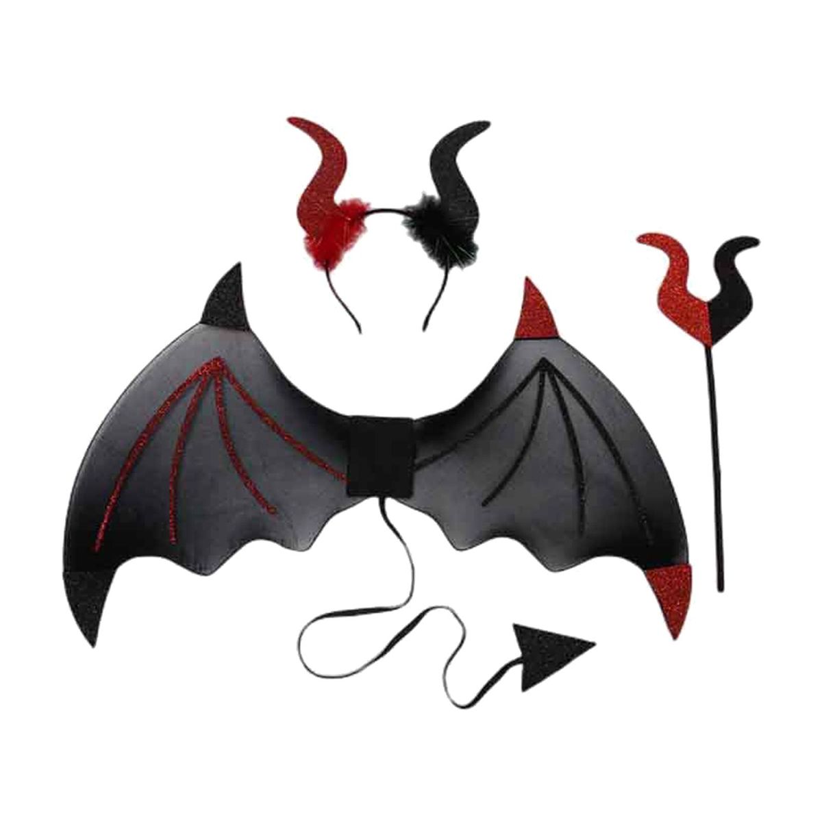 【Package Includes】Wing with tail, Headband and fork only; Halloween children's party wing of devil set cosplay props.