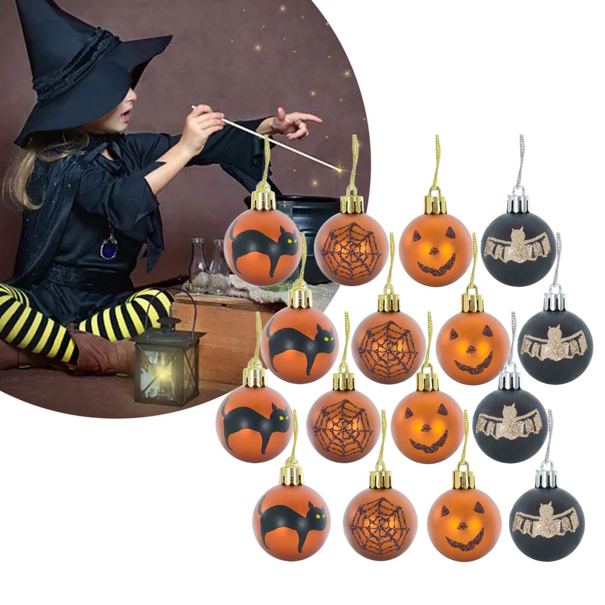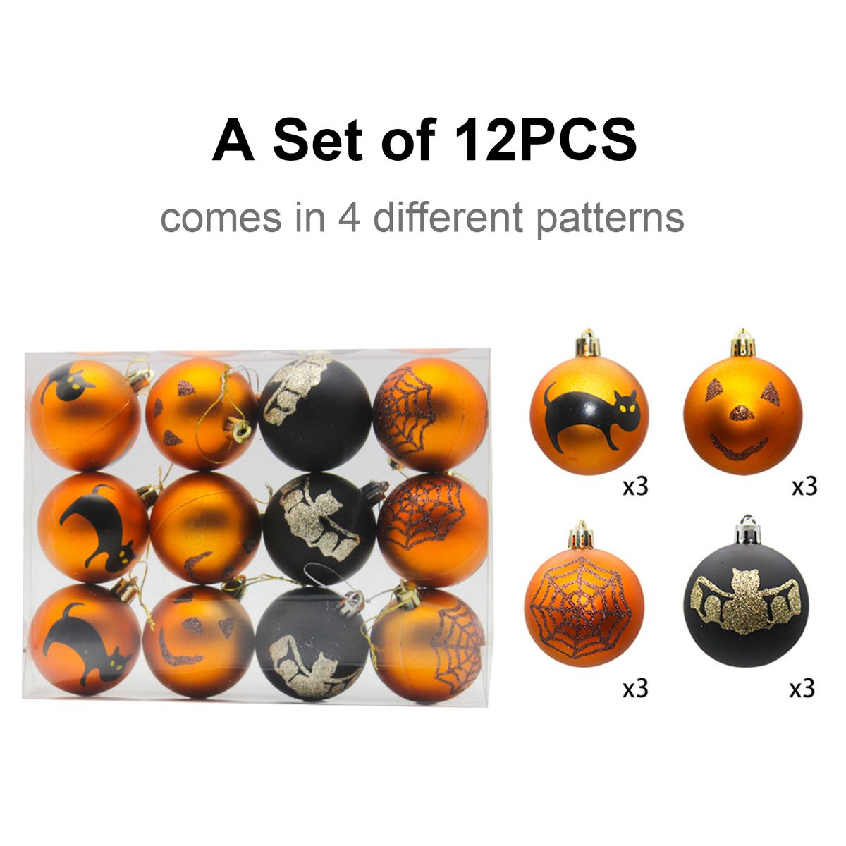 A set of 12 Halloween decoration balls are included.