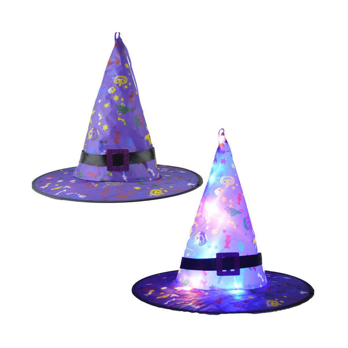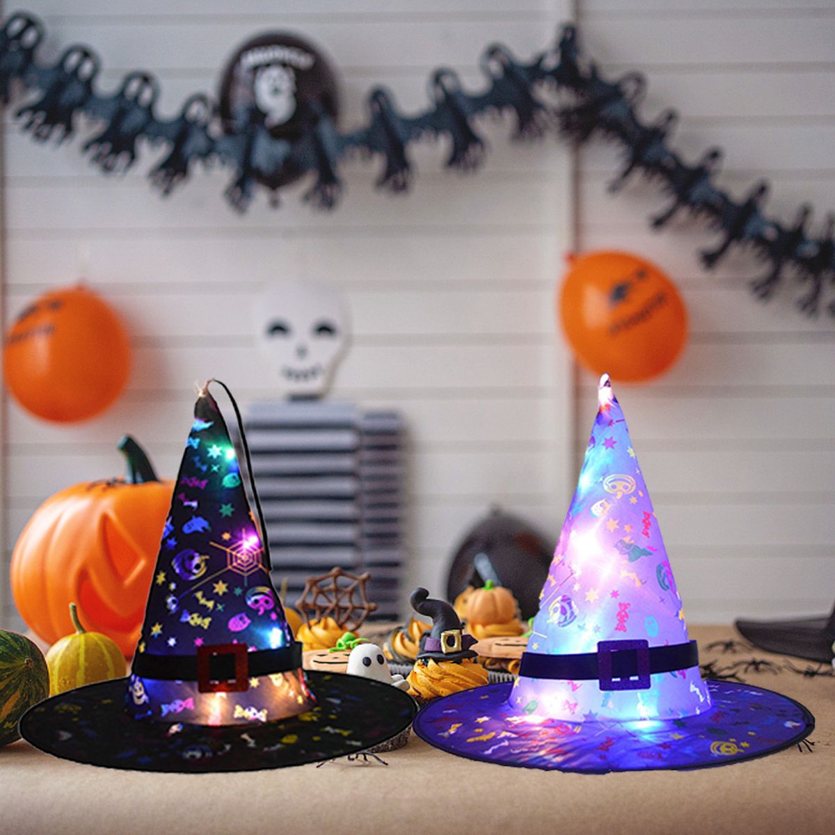 Each witch hat is equipped with 2 button batteries so that you can immediately turn on the switch.