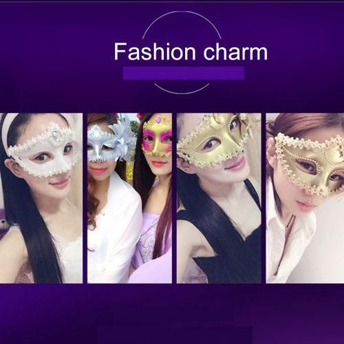 Halloween Masquerade Party Dance Plating Side Flower Feather Venice Princess Mask (Gold)