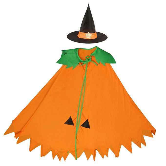 Halloween Pumpkin Cape Cloak with Cone Hat Costume Cosplay Fancy Dress
