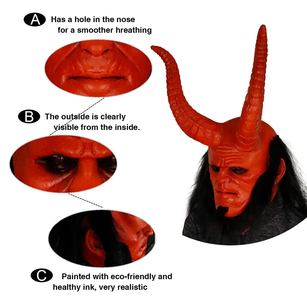 1X Molezu Halloween Scary Corner Hellboy Latex Mask Cosplay Hellboy Call Of Darkness Latex Masks Horror Halloween Party Mask