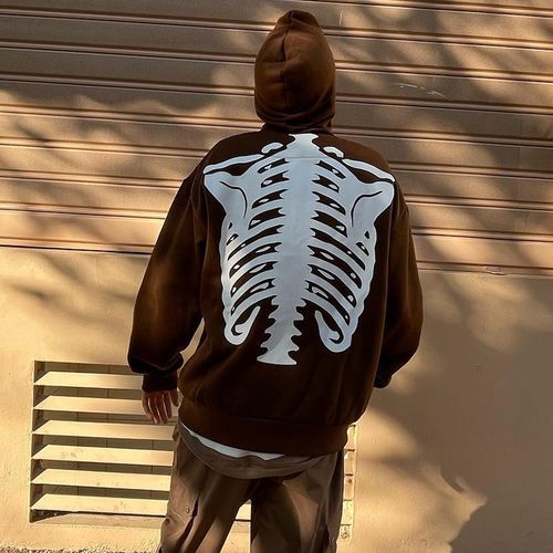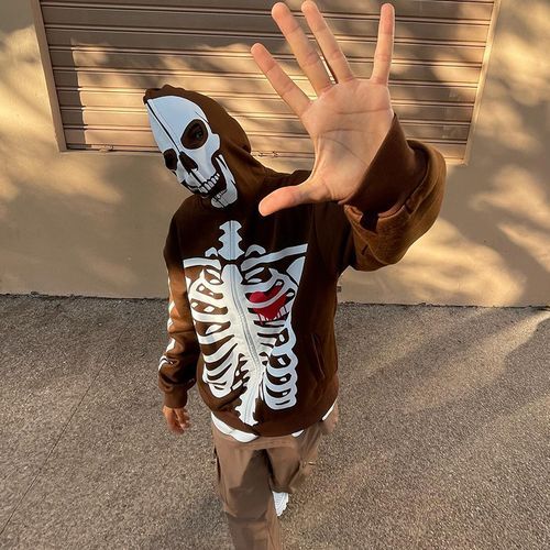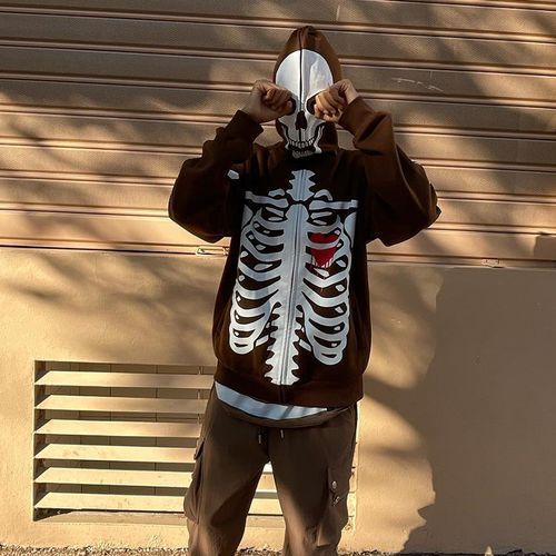Buy Halloween Skull Human Skeleton Print Long Sleeve Hooded Men's Sweatshirt-brown in Nigeria