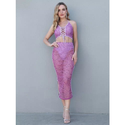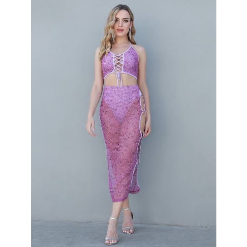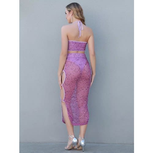 Buy Halter Mesh Lace-up Bodycon Set - Crop Top And Midi Skirt in Nigeria
