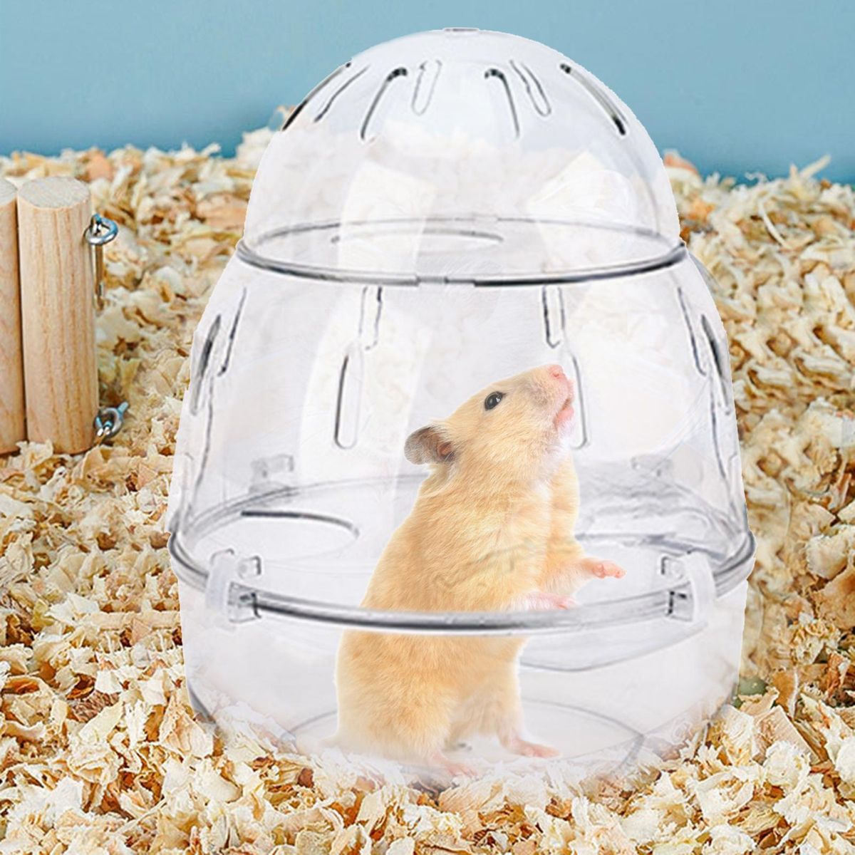 Featuring transparent design, this pet bathroom can allow you to have an unobstructed view to observe the hamster bathing, playing and digging.