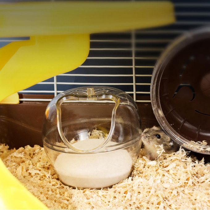 The shape of the space is bright and spacious, and the outer wall is transparent, which is convenient for observing the hamster bathing.