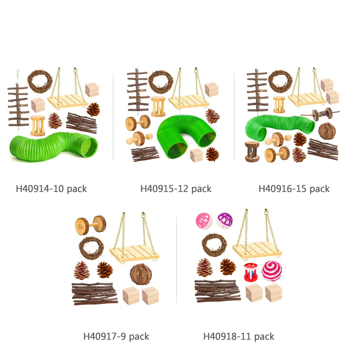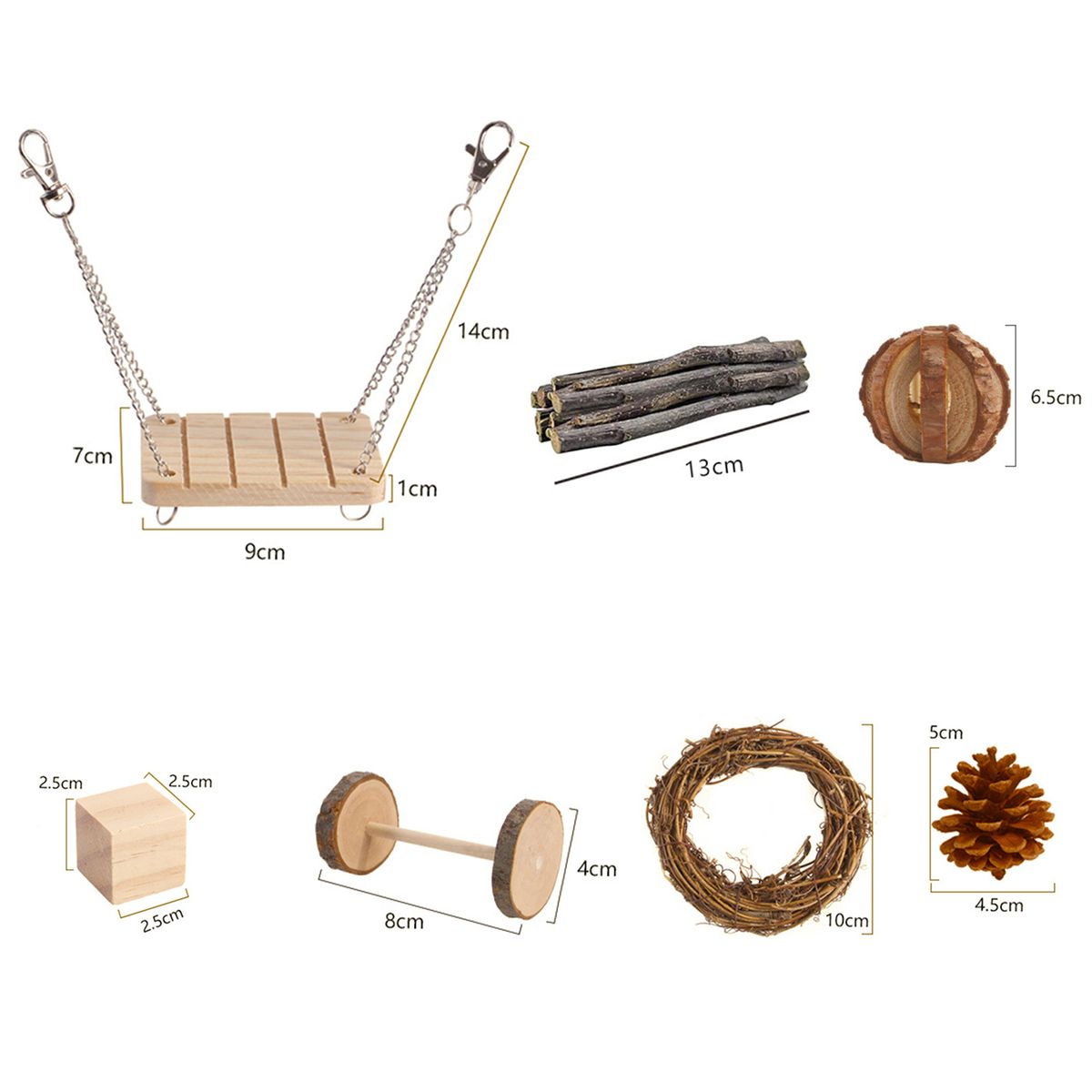 The package contains 9 pcs hamster toys to help them play or exercise and maintain their physical and mental health.