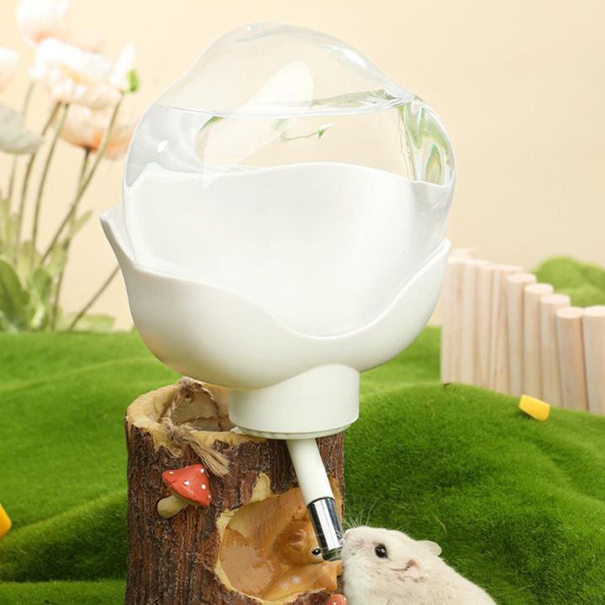 The water dispenser adopts double ball bearing design, which can keep from water leakage effectively. And it supports automatic drinking, allowing hamsters to drink water easier.
