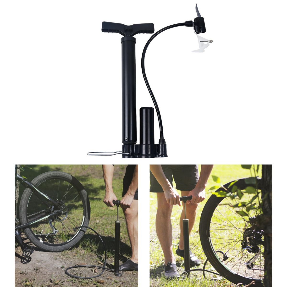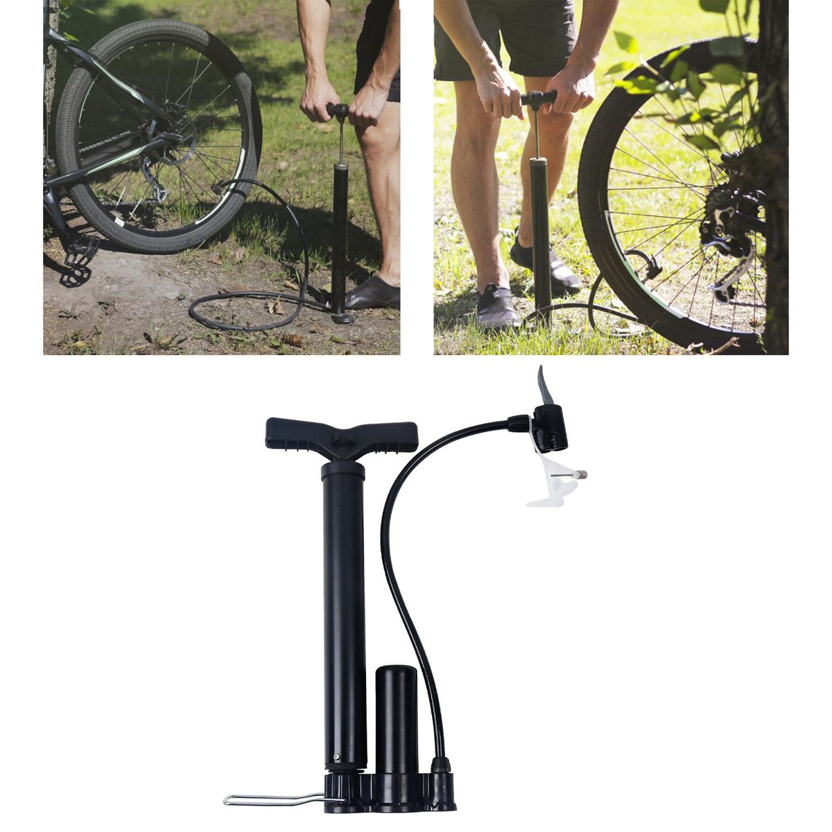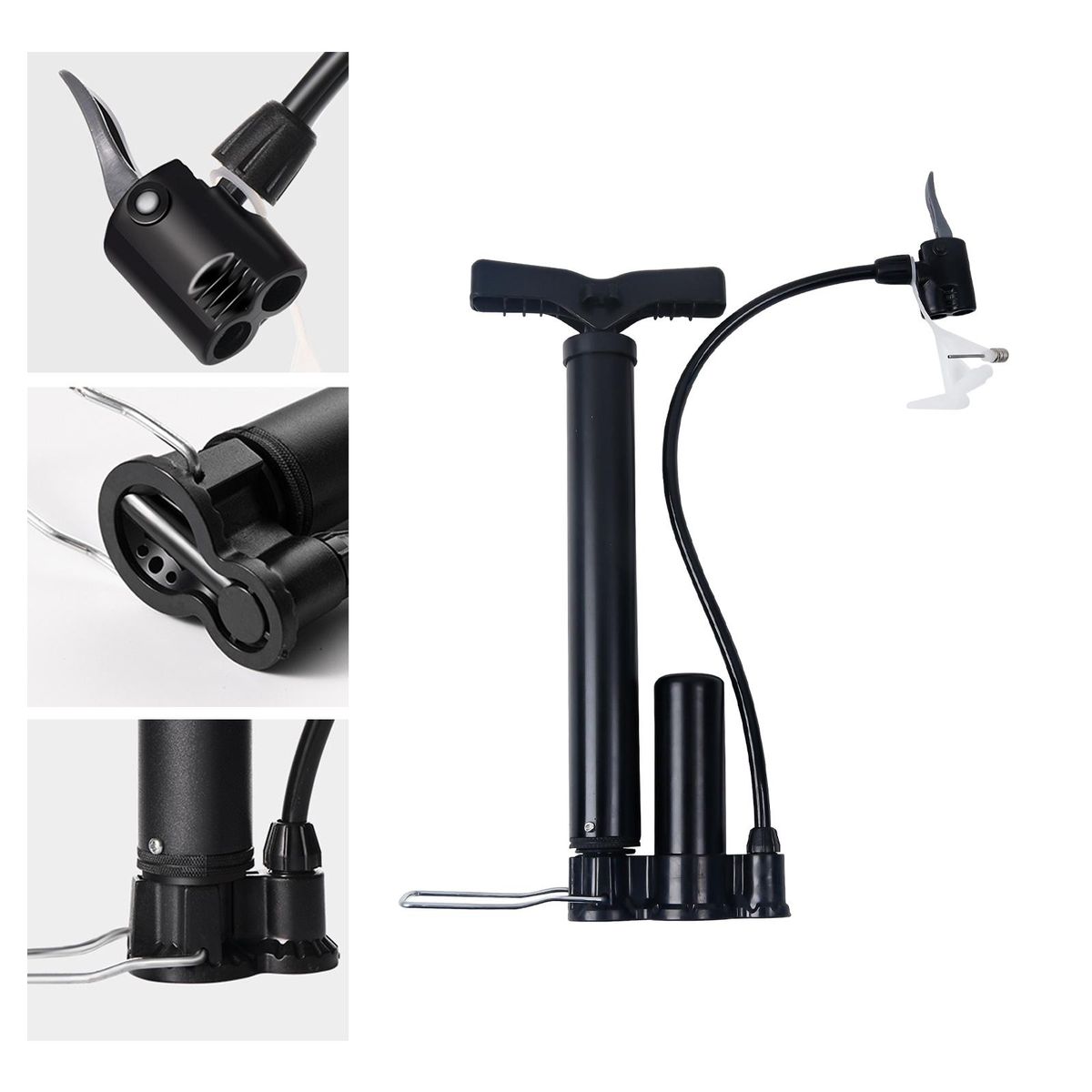 Compact and Portable: mini hand pump made of high quality plastic material, Durable, Ultralight, Solid and easy to carry .Dual Valves Design: With Presta, and Schrader valves, allows you to inflate more conveniently .With Storage Seat: Detachable handle, Mounting bracket included for convenient carrying and storageAir pressure 120PSI: Floor Pump more easily to inflate, makes it easy to use and labor savingMultipurpose Air : Comes with air needles, for Bike, Electric Bicycle,Motorcycles, game balls, inflatable toys, air bed, balloons, swimming rings, inflating boats inflating .