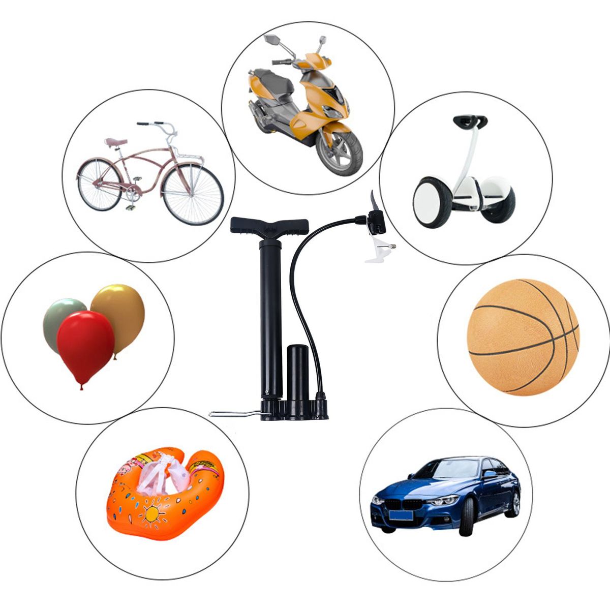 Multipurpose Air : Comes with air needles, for Bike, Electric Bicycle,Motorcycles, game balls, inflatable toys, air bed, balloons, swimming rings, inflating boats inflating .