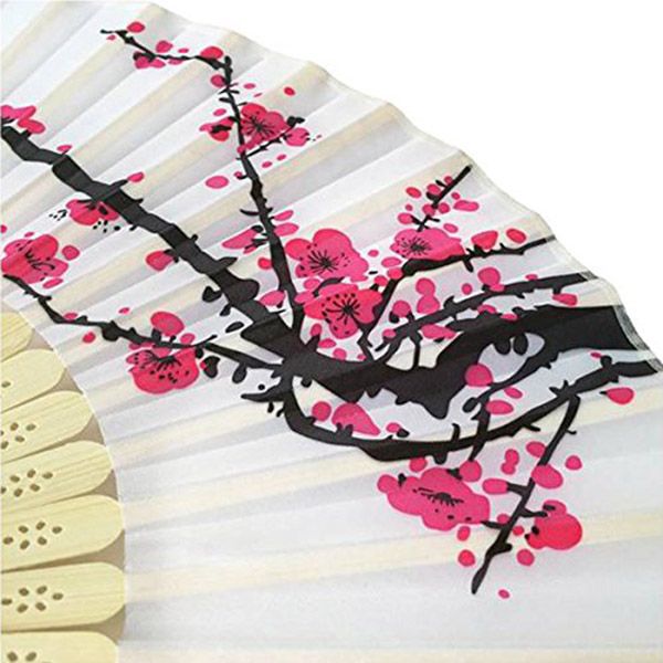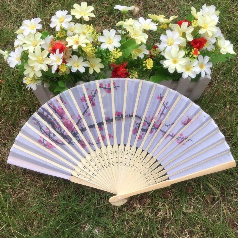 Buy Hand Bag Fan Silk White Organza With Folding 20pcs/lot Fan Plum Gift Design Bamboo Elegant Flower Wedding in Nigeria
