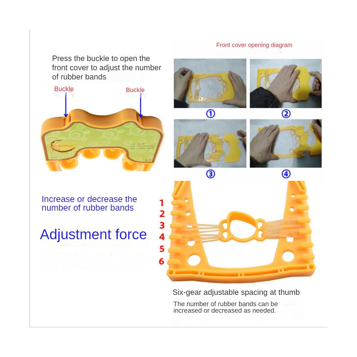 Features increase or decrease the number of rubber bands and adjust the strength