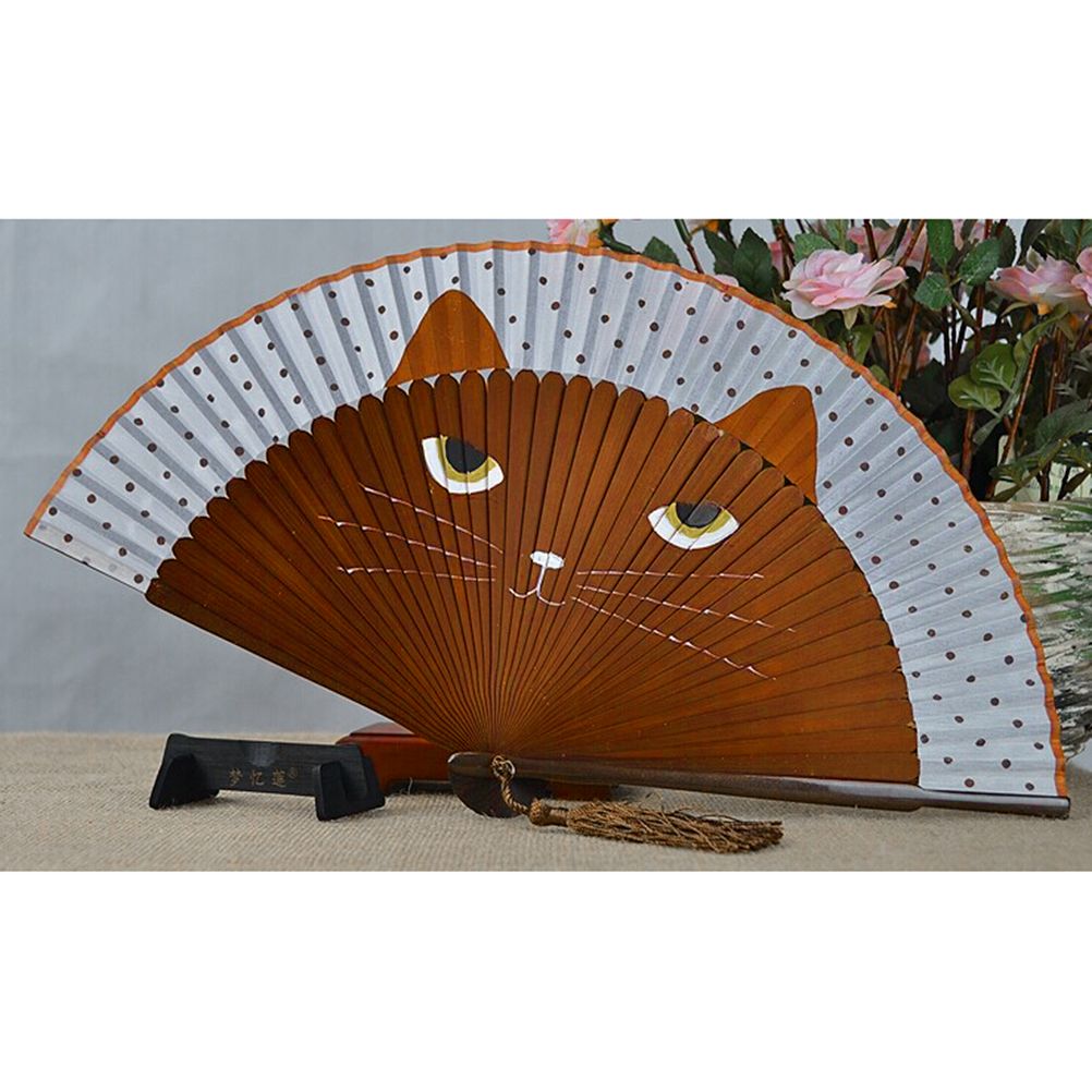 Buy Hand Gift Fan Bamboo Art Fan Cat Crafts Cartoon Girls Decor Silk Hand Cat Folding Painted Wall in Nigeria