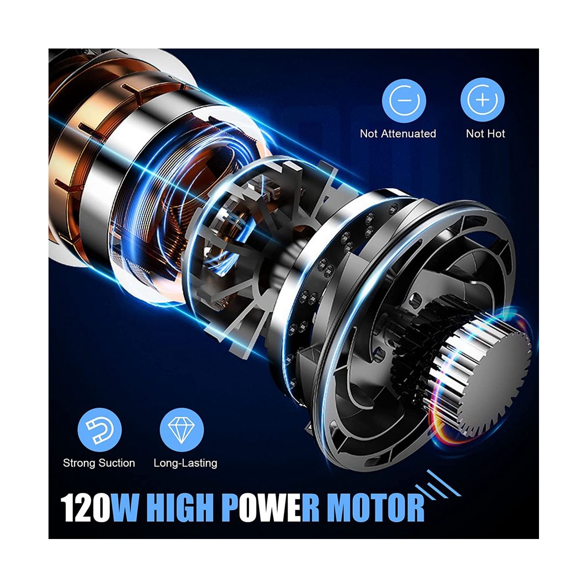 Our high power portable mini vacuum has a 10000pa strong suction power and a rated input power of 120W, which can quickly and thoroughly clean up dust, pet hair, and debris.
