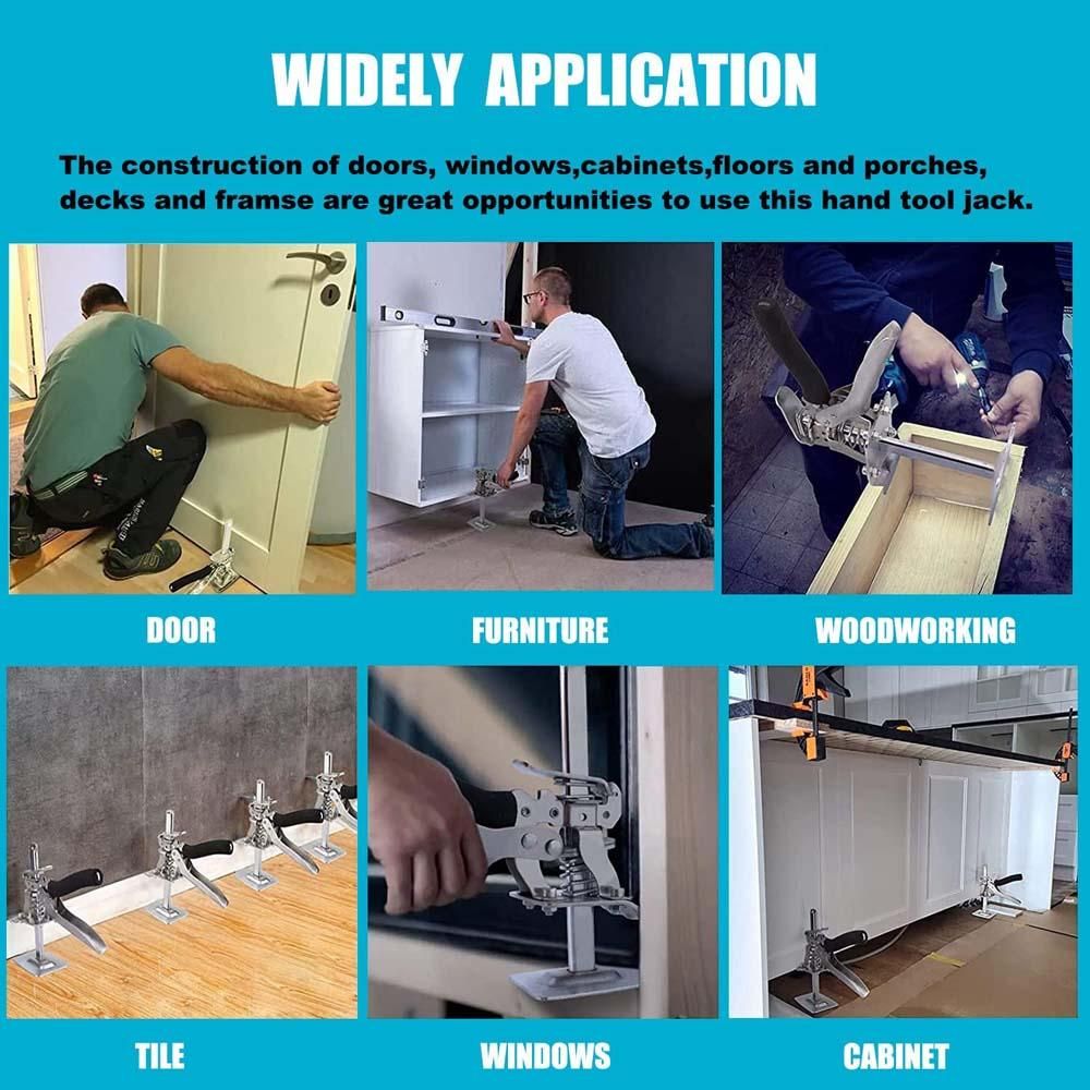 【Scope of application】The arm manual tool jack set can be used whether you are using it for wood splicing, door and window installation, raising furniture, tiles or goods. It can be used for house decoration, building materials market, wholesale market, outdoor activities and other places.
