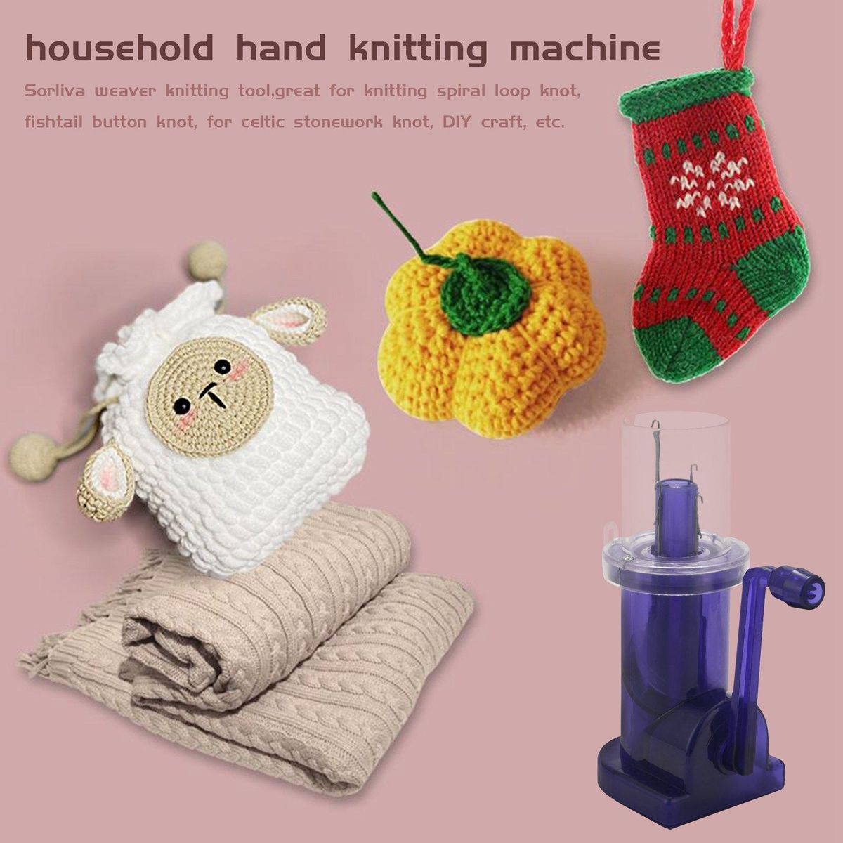 2This simple hand- circular knitting machine uses any lightweight yarn from strands of sewing thread through yarn