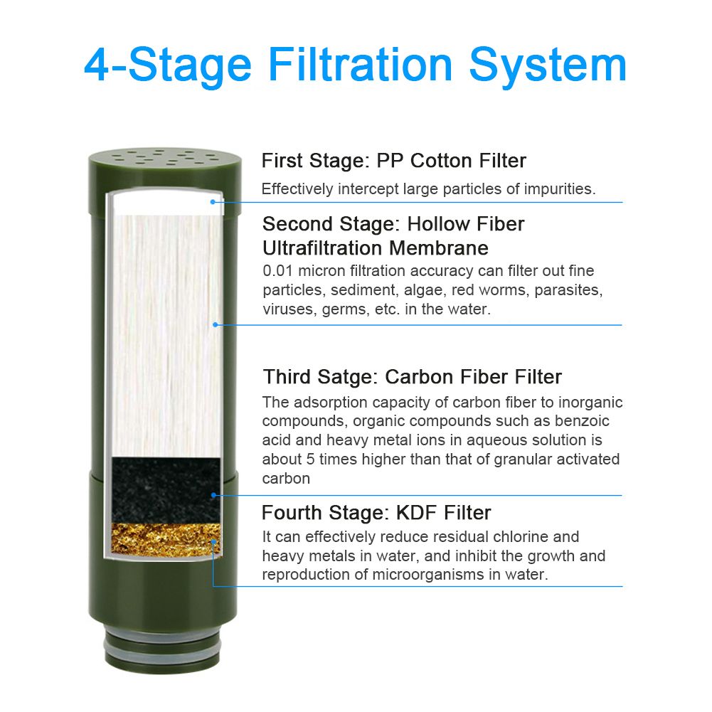 Portable water purifier, 0.01 micron filtration accuracy, 4-stage filtration system, helps you easily obtain healthy and drinkable water anytime, anywhere.