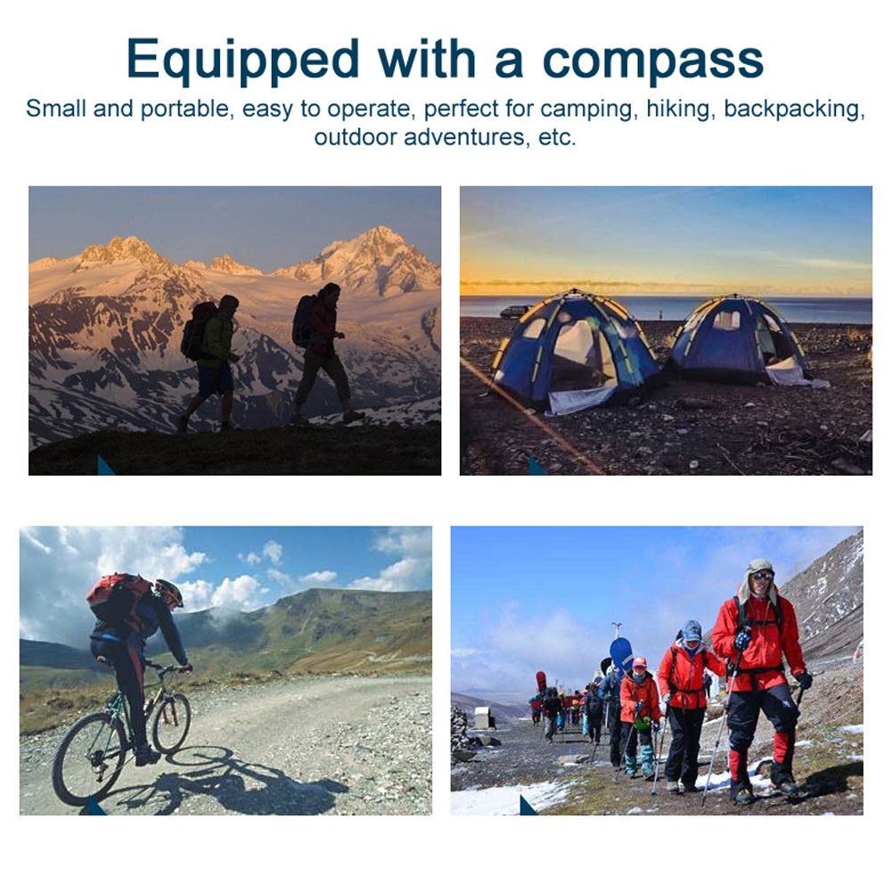 Small and portable, easy to operate, perfect for camping, hiking, backpacking, outdoor adventures, etc. Equipped with a compass, which can help you find your way.