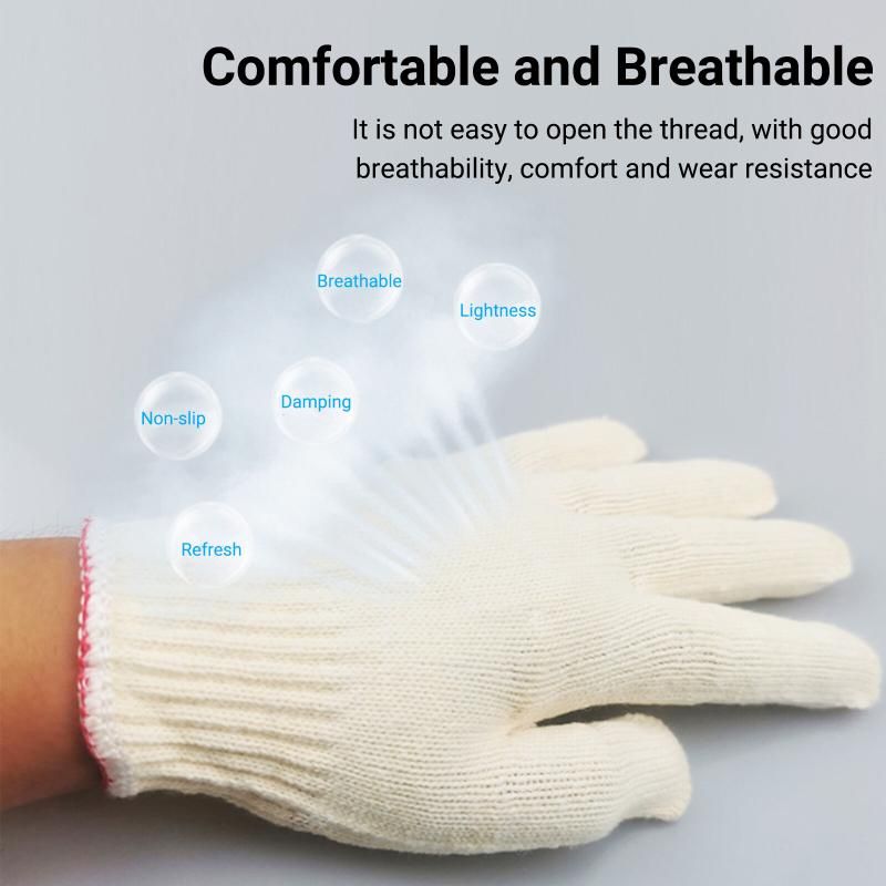 This pair of work gloves are made of comfortable nylon materials, which can improve air circulation in and around the hands to keep hands dry and healthy; Elastic knit wrist helps to prevent dirt and debris from entering the white glove and ensure that the gloves will stay in place while you're busy working.