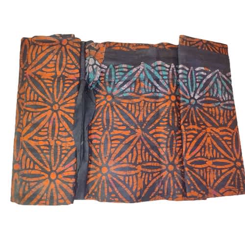 Buy Handcrafted Batik Cotton Fabric - Abstract Black & Orange - approx 5 Yards in Nigeria
