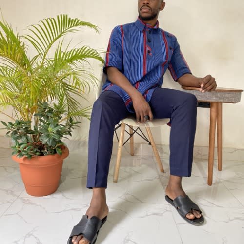 Buy Handcrafted Striped Button Down Aso Oke Shirt in Nigeria