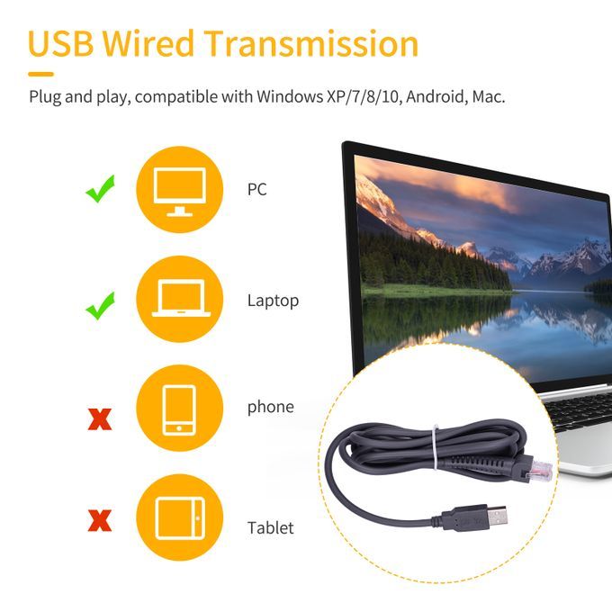 Features:Handheld barcode scanner can be used to scan and decode one-dimensional (1D) barcodes, fast scanning speed and high accuracy.