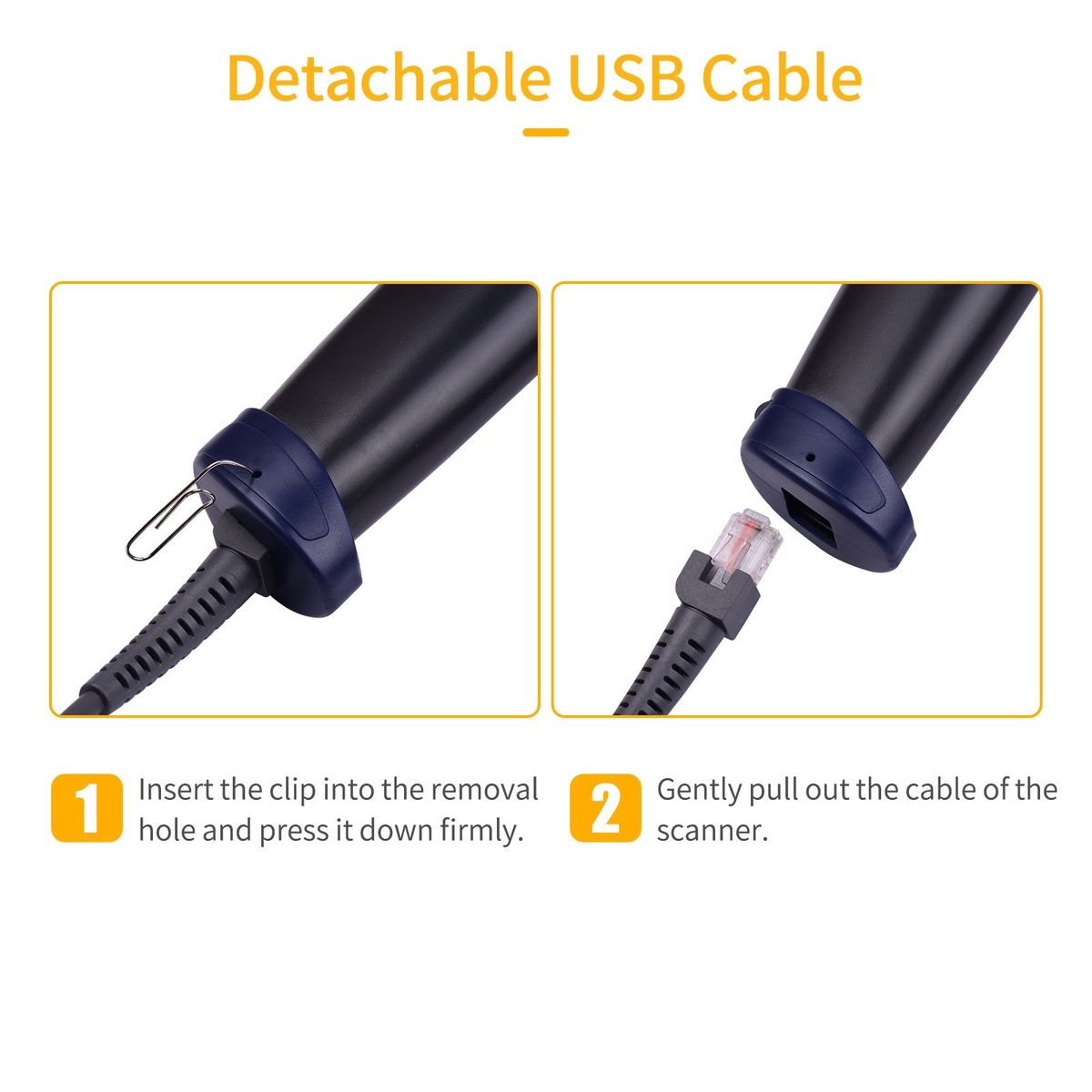 Handheld barcode scanner can be used to scan and decode one-dimensional (1D) barcodes, fast scanning speed and high accuracy.
