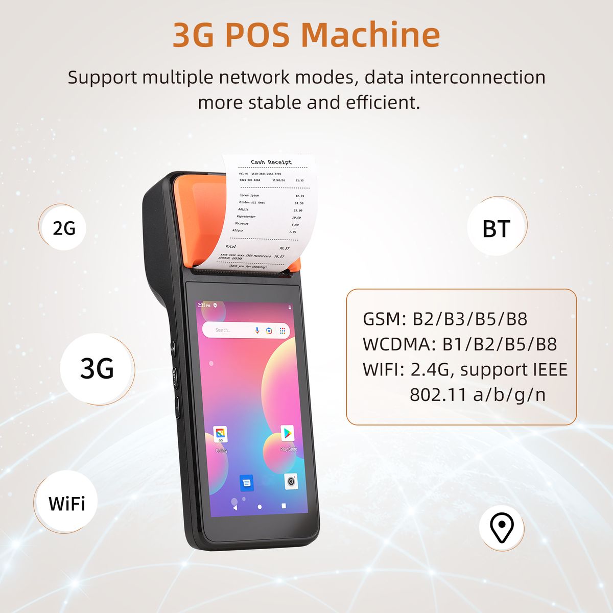 Intelligent payment terminal device, performs well as receipt printer and camera, supports 3G, WiFi, BT4.0 and WCDMA network. And 2M focus camera can support scan and recognize 1 Dimension and 2 dimension barcode.