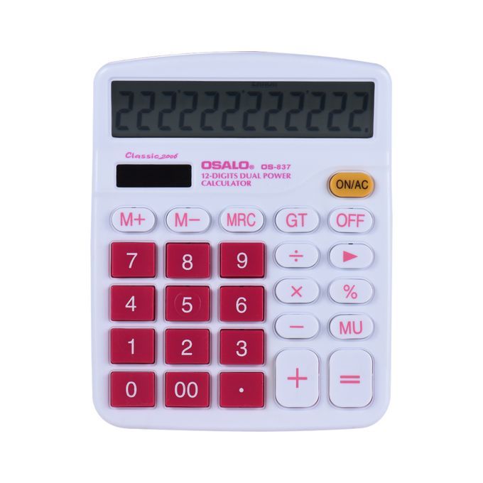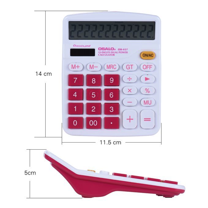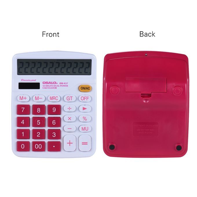 The portable calculator features large and clear 12-digit display, durable and comfortable keys, solar and battery powered supply. It with standard functions, such as arithmetic keys, 3 memory keys, backspace key, percent key and mark-up/mark-down key, great useful for office, home and school work.