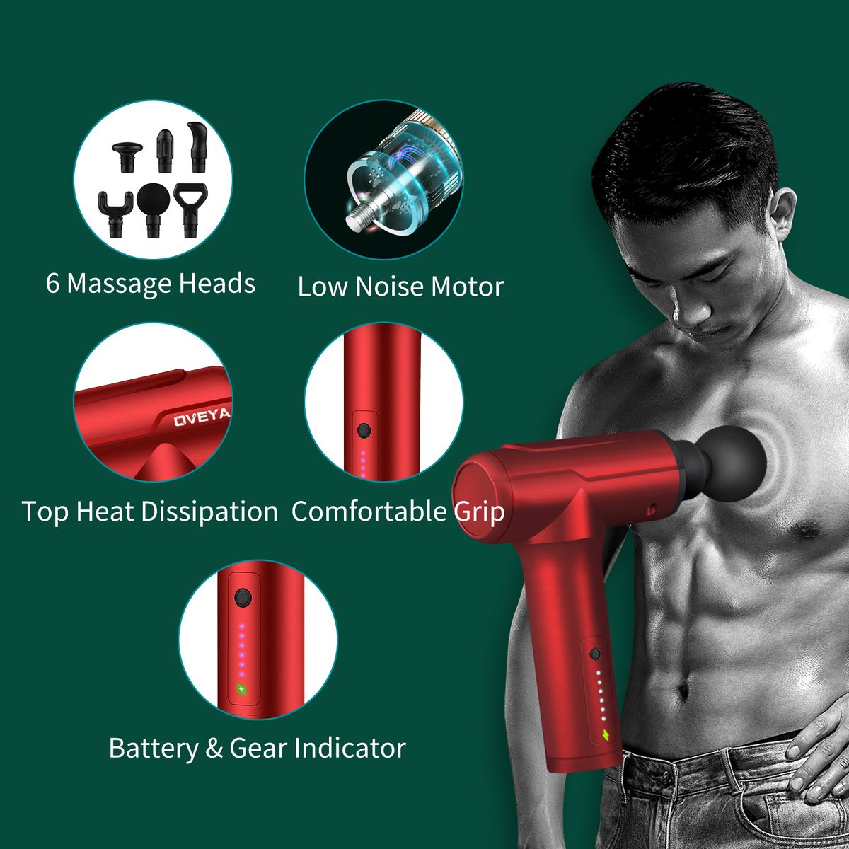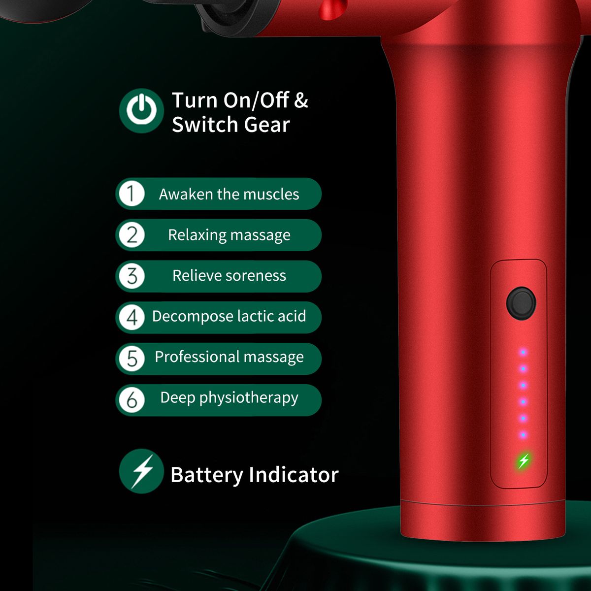 - [6-gears]This massager has 6 levels of vibration intensity that can be switched and adjusted. From muscle awakening to deep physiotherapy, it can easily cope with various situations, meet the needs of non-stop crowds, and a bring you a comfortable experience.