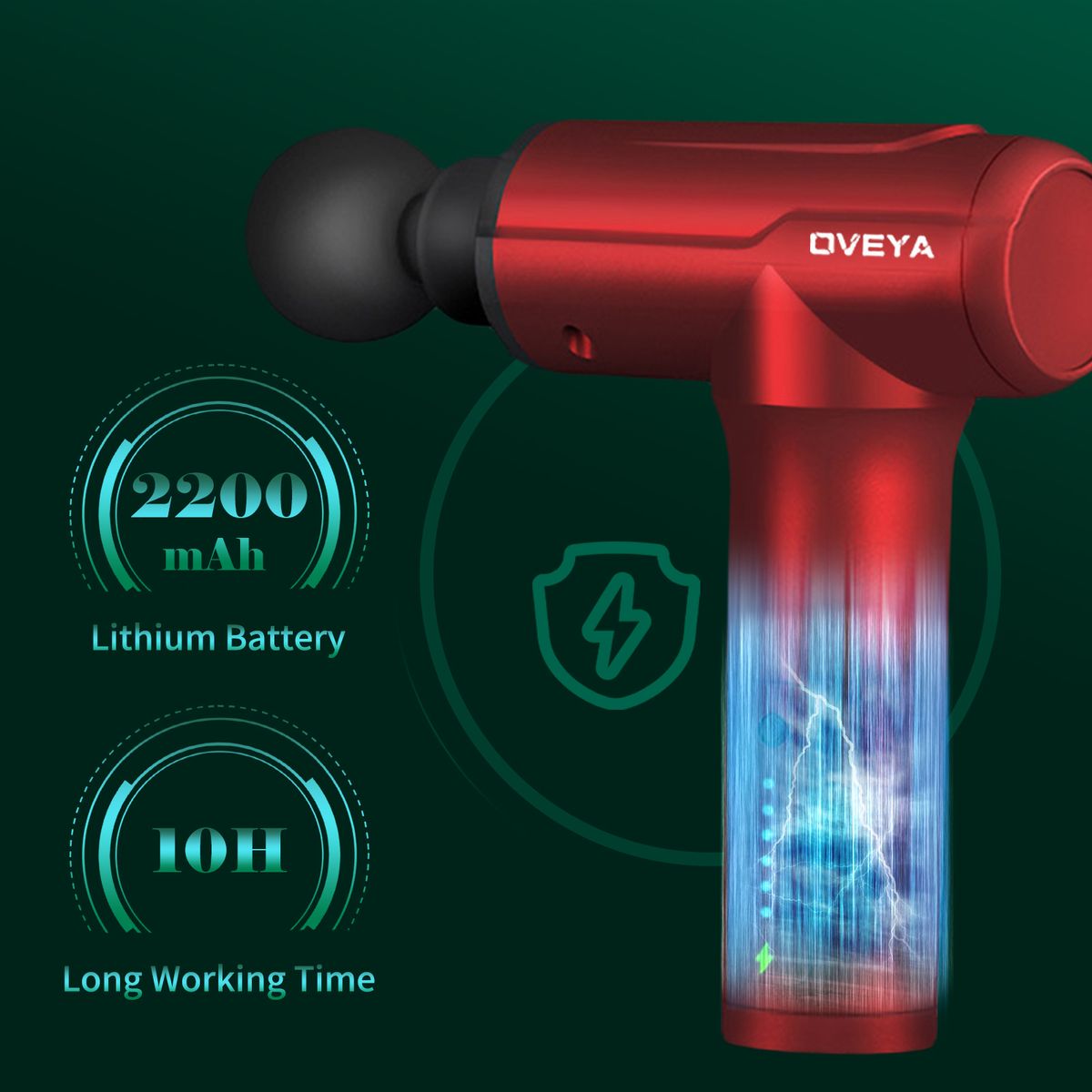 - [USB Rechargeable]This massager has a built-in 2200mAh lithium battery, which has high efficiency, stable energy consumption, and long working time, up to 10h.