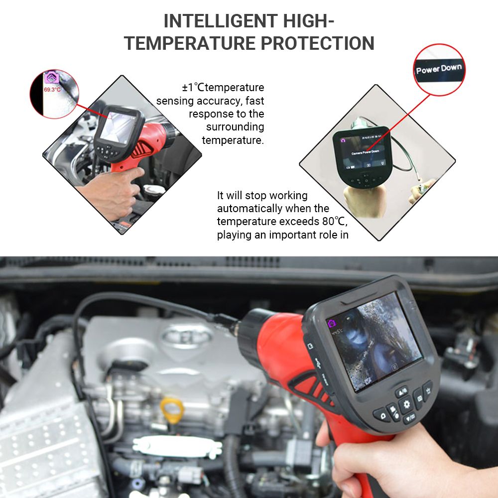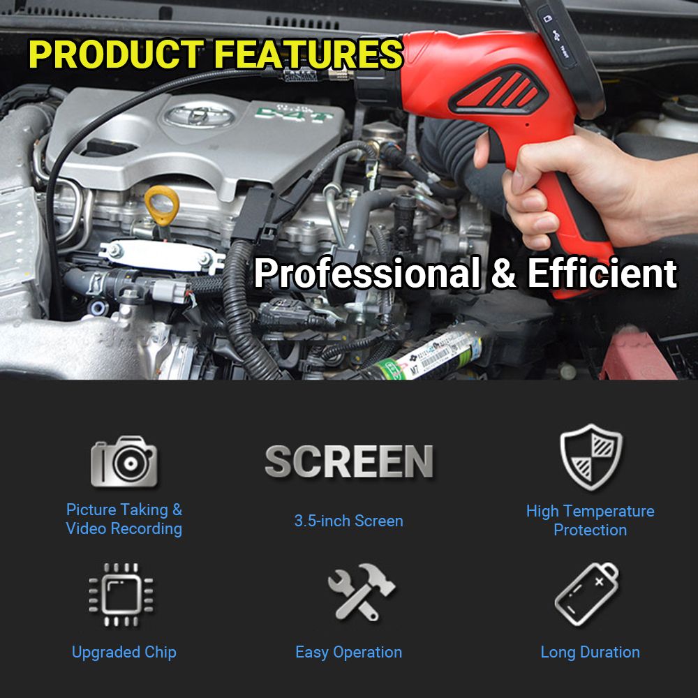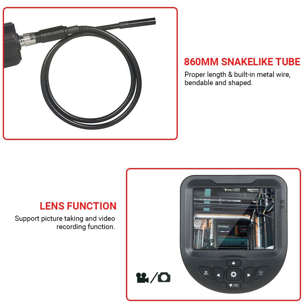 With 3.5inch display screen and 860mm snakelike tube, this portable and practical endoscope is easy and convenient to operate for automobile inspection, pipeline inspection, air conditioning inspection, etc.