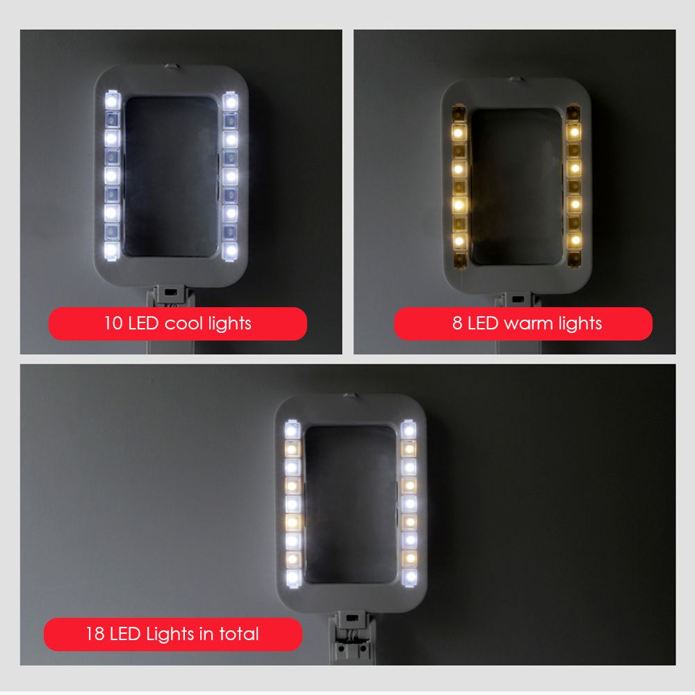 Equipped with 10 LED cool lights and 8 LED warm lights, which can be easily switched through one button, especially useful in low light settings.