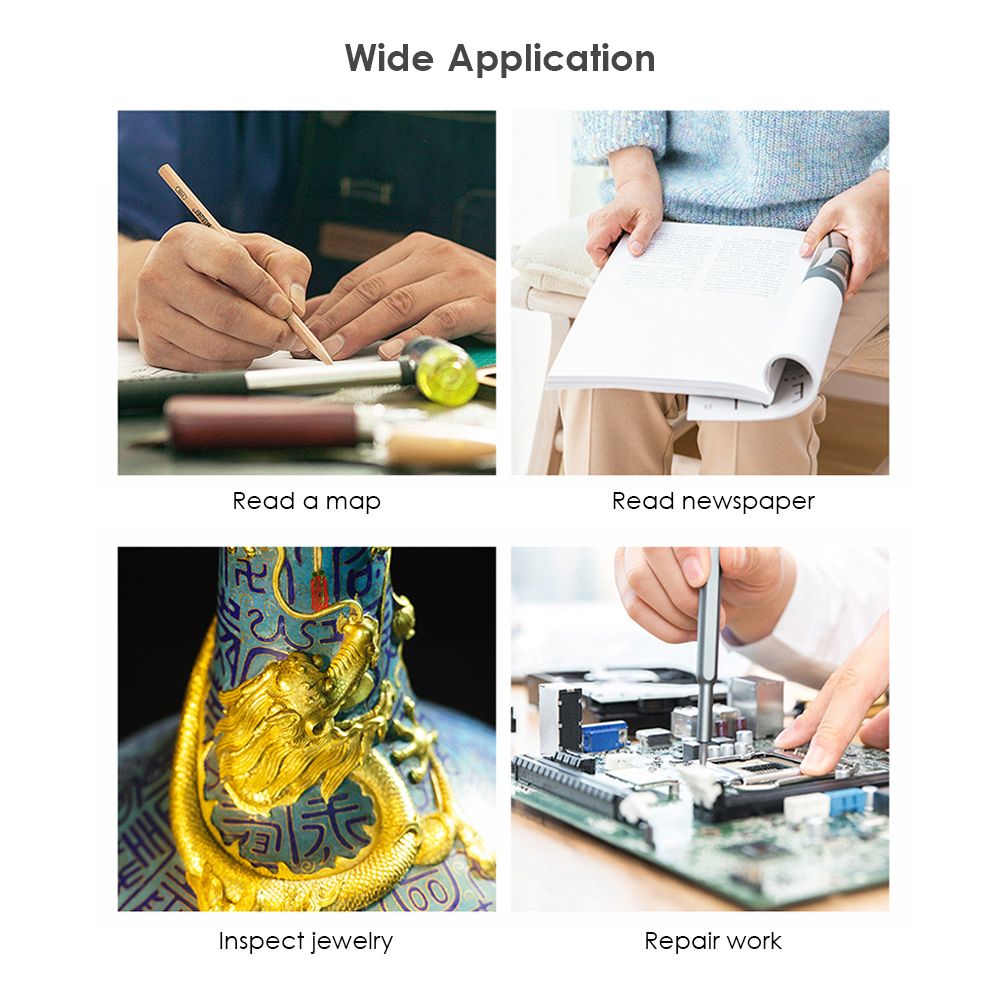Foldable design, can be used as a handheld magnifier or a free standing tabletop magnifier, flexible to use.