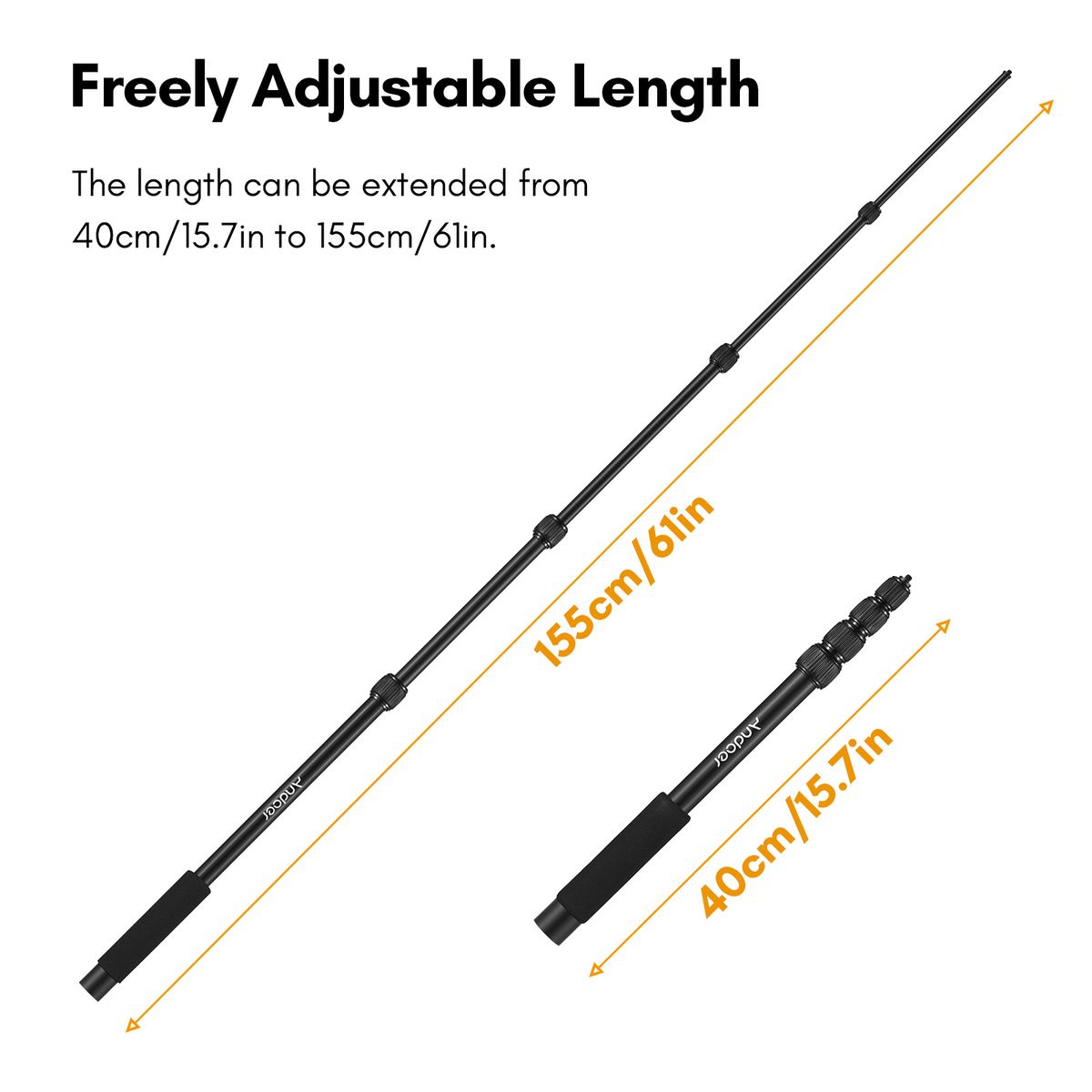 【Adjustable Length】5-section telescoping design, you can extend the microphone boom arm from 40cm/15.7in to 155cm/61in. With twist locks to ensures quick and secure locking between each section.