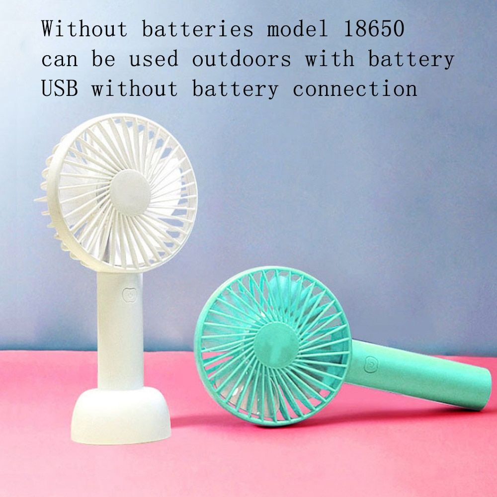 Product information: Color: White Pink Green BlueSize: 10.6x21x11.2cm Material: PlasticFeature:Adjustable Wind Speed: Features 3 wind modes switch freely by the power buttonUSB Powered: Compatible with computers laptops portable chargers and other devices with USB outputBase Support: With the supplied base stands up on the desktop more stableMini Design: Easy to carry can be put into your bag or useApplication: mini fan for the office home dorm study library games room or outdoorsNote: Battery is not includedPackage included: 1pcs Mini Fan 1pcs USB Cable 1pcs Base and 1pcs Lanyard