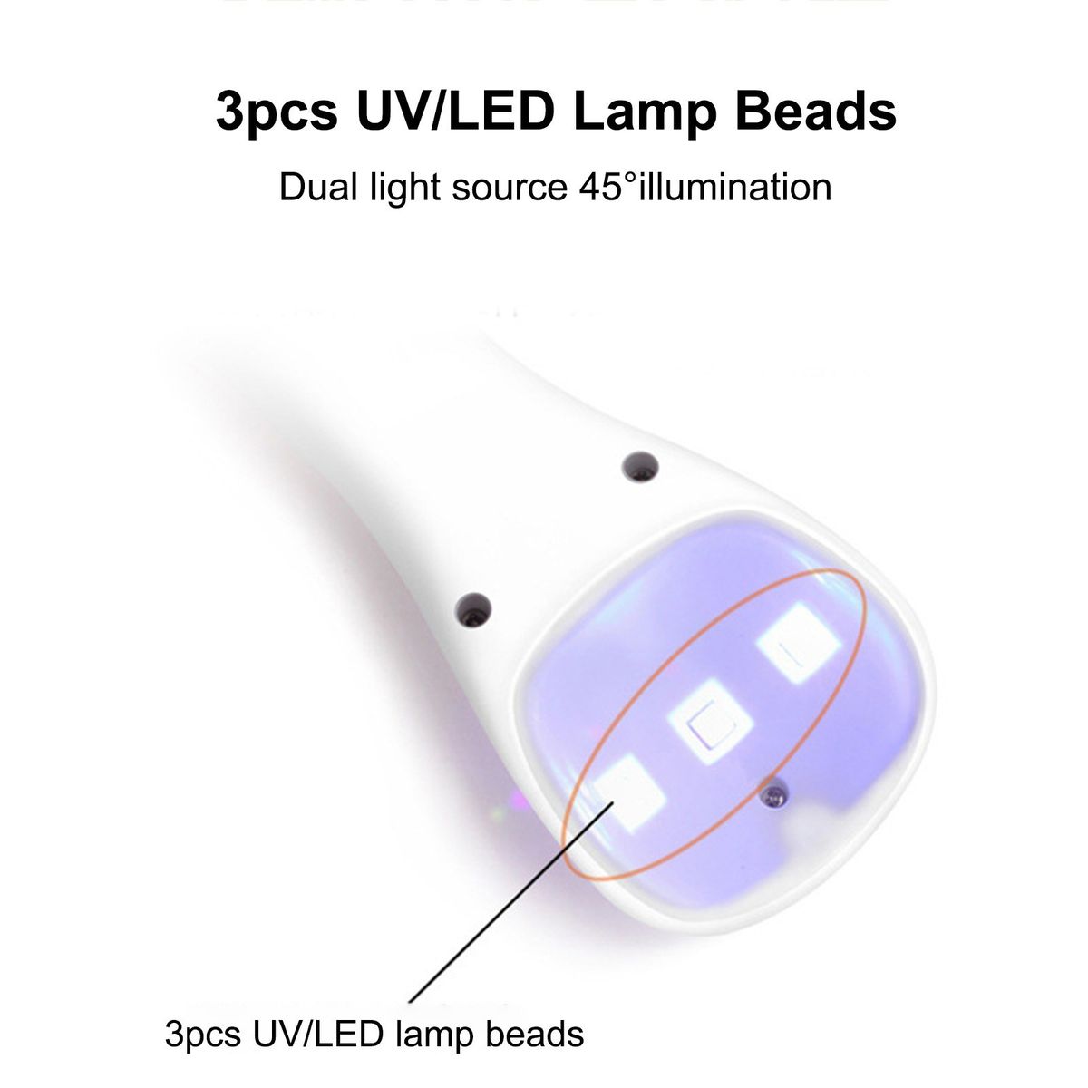 Features:3pcs UV/LED lamp beads, dual light source 45°illumination, suitable for drying all kinds of nail-polish at short time.