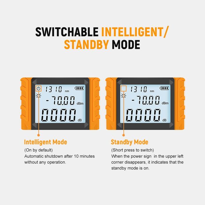 - Additional Features: 5km high-definition red light, replaceable ceramic core, selectable intelligent standby mode, energy-saving design, dual mode of supply, switchable units, network cable test, WiFi test, result storage, wavelength data memory, frequency identification, overcharge protection, over current protection, over voltage protection, over protection, short circuit protection and temperature protection.