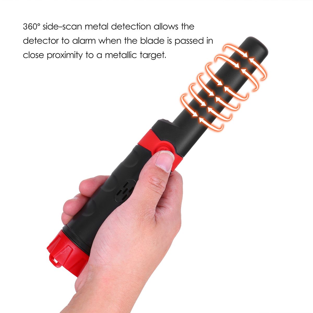 360 deg; side-scan metal detection allows the detector to alarm when the blad-e is passed in close proximity to a metal-lic target.