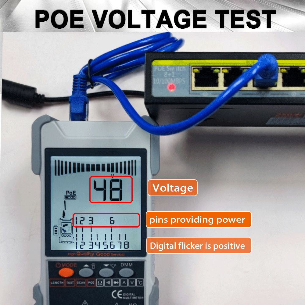 POE Test: POE testing can check cable mapping polarity and voltage of POE network switches.
