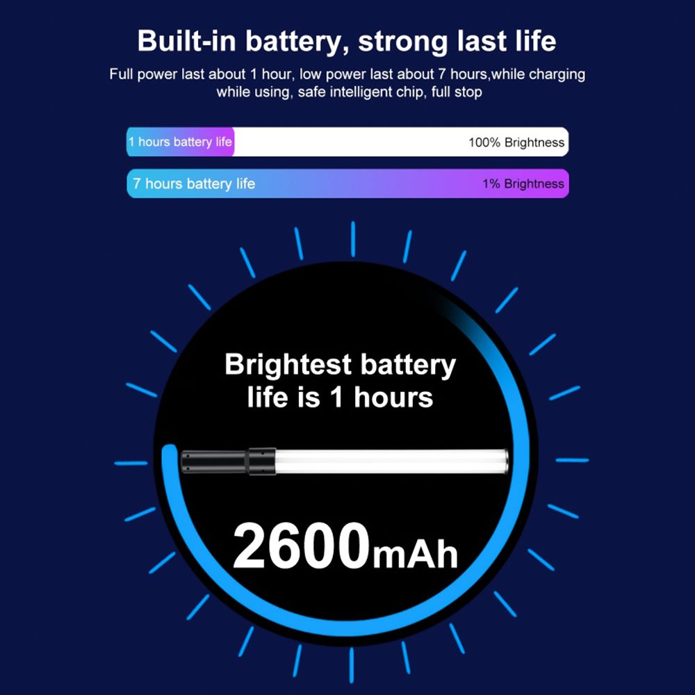 Full Color RGB Tube Light: Adopts 122pcs high-quality LED light beads, high brightness and 90+ high color rendering, true color reproduction, very suitable for vlog, video recording, portrait or product photography, live streaming, etc.