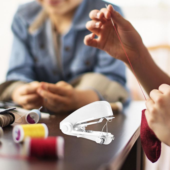 Mini handheld sewing machine, practical tool when you need a quick solution for simple on the spot jobs like repairs and alterations.