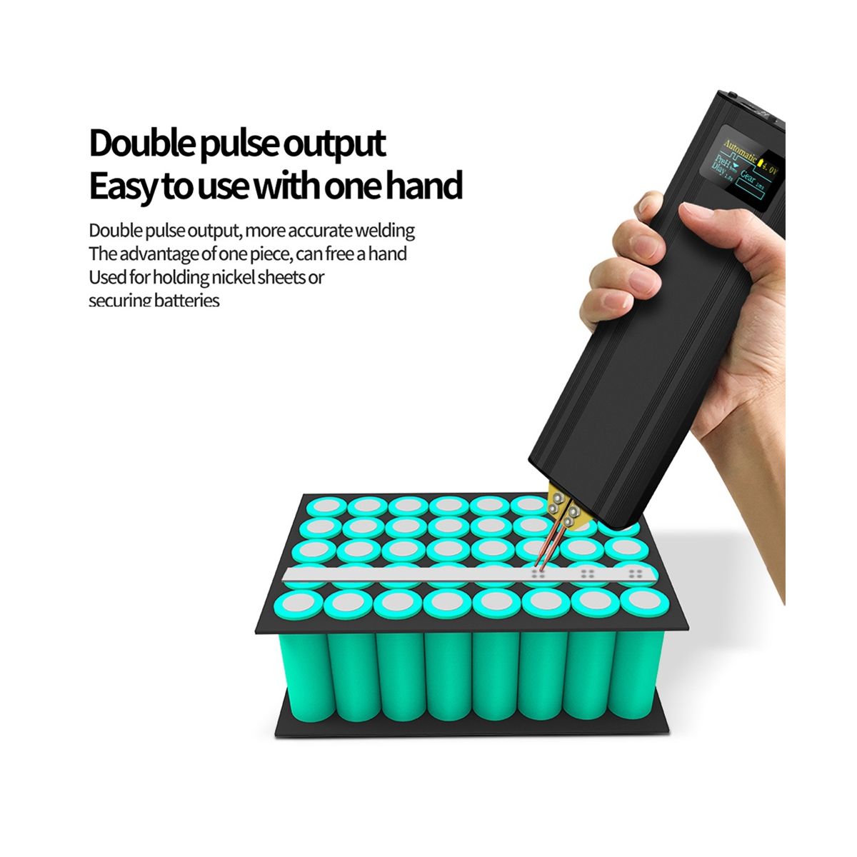 Dual pulse output, more accurate welding, one-handed operation, one-handed grip, convenient operation and use, one-piece advantage, freeing one hand to hold nickel sheets or fix batteries