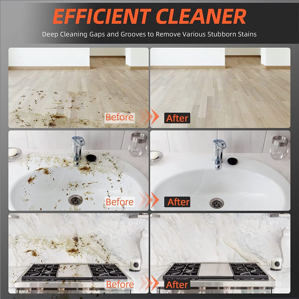 【Wide Application】The steam cleaner can be used for cleaning smoke lampblack, washing machine, wall, floor, window, door, upholstery and more, widely applied in kitchen, bathroom, furniture, car, etc.
