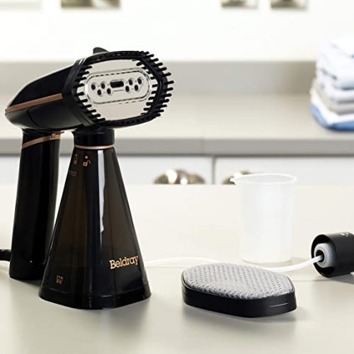 This handheld garment steamer conveniently steams your clothes. It features 7 minutes of continuous steam, a soft grip and a detachable lint brush that allows you to remove unwanted lint from clothing.