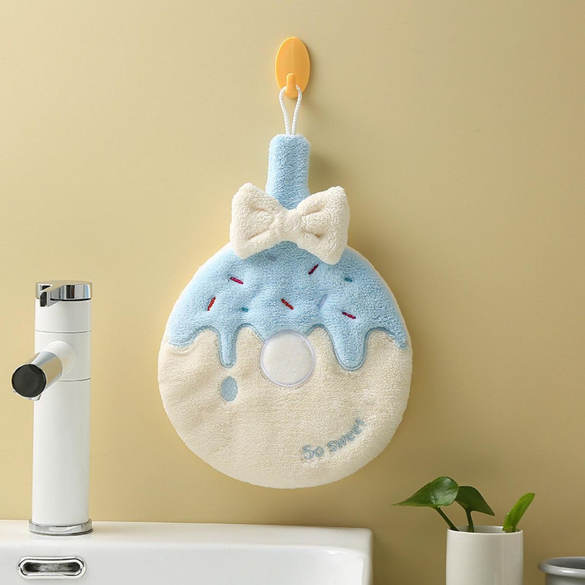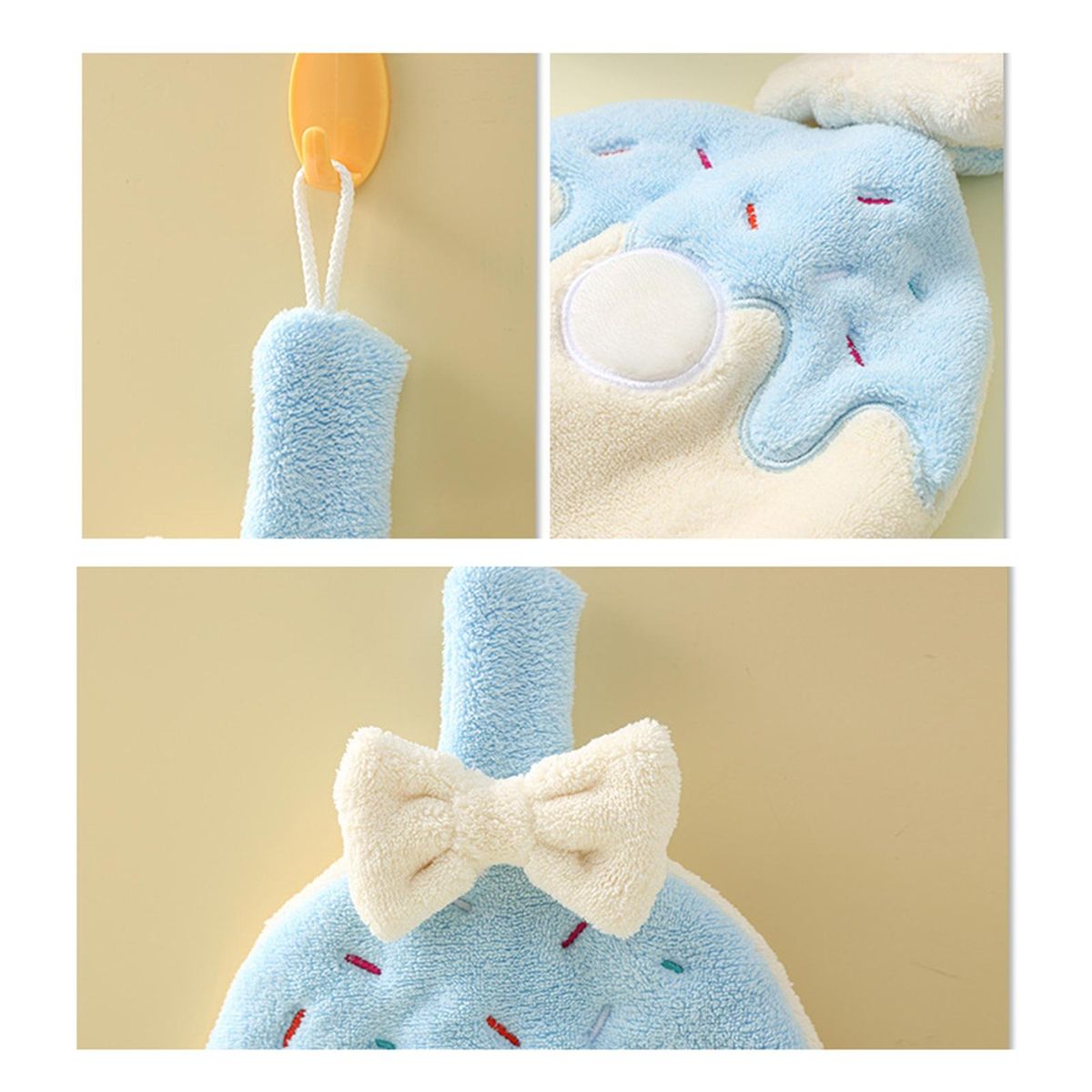 The lanyard design is easy to hang, which not only saves bathroom space, but also prevents the hand towel from getting moldy due to prolonged dampness. Cartoon donut shapes are more likely to attract children's attention and make them pay more attention to the habit of wiping their hands