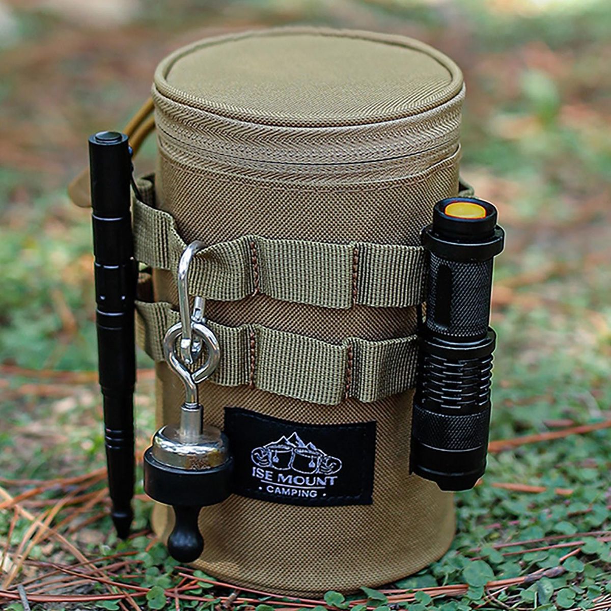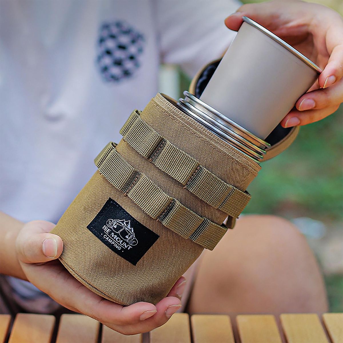 Our water bottle carrier, the perfect accessory for your outdoor adventures! made of high-strength nylon, this carrier is designed to be stronger and more durable than ordinary snap buttons. the adjustable spring button closure allows you to customize the tightness of the drawstring opening, ensuring a secure fit for different bottle sizes. no more worries about your water bottle falling out.