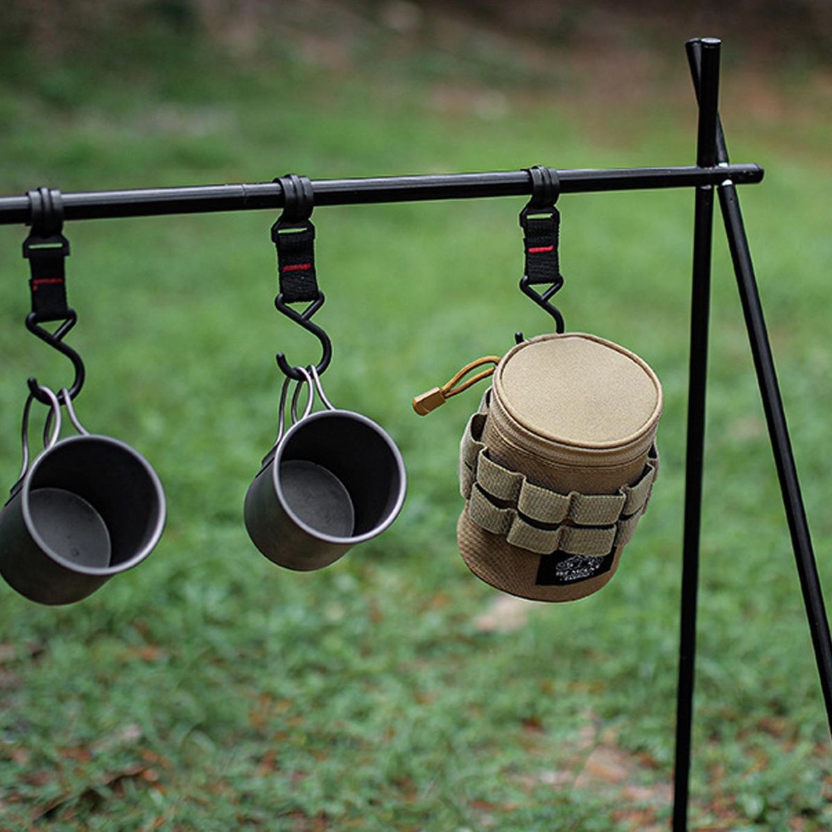 But that's not all our carrier also features a high-strength d-shaped buckle that can be easily hung on other equipment. attach it to your backpack or belt using a carabiner, or hang it on bicycles, walls, and more. it's even versatile enough to hold small outdoor equipment like flashlights and keys. convenience and durability combined.