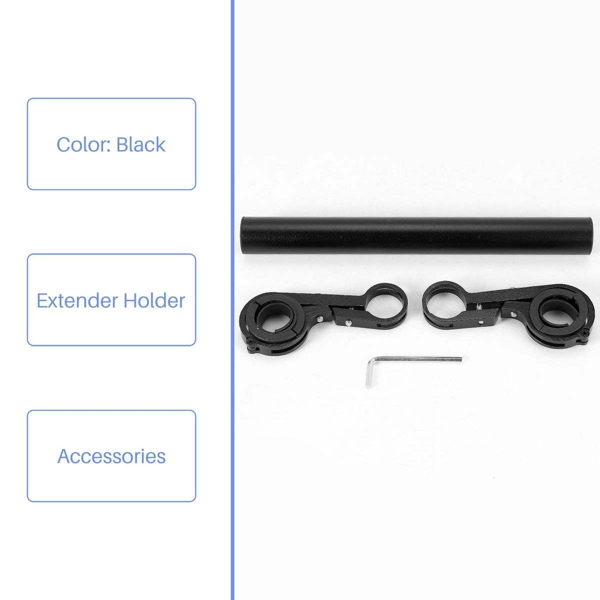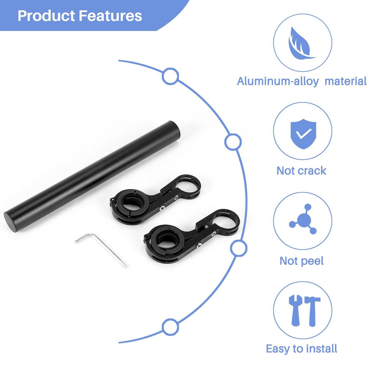 Description: Bicycle Bike Carbon Fiber Aluminium Alloy Double Handlebar Extension Mount Holder Handle Extender Description: 1. This T type bicycle bracket is a good accessory. It can use a bicycle lamp or stopwatch. It is easy to install and remove without any tools. 2. It is suitable for any bicycle lamp and can effectively your riding safety. 3. This is a useful tool for bicycle lovers. Feature: 1. It can be mounted on a tube or a handlebar. 2. Install on your bicycle handlebar, extra storage space for your bicycle lights, GPS or telephone. 3. Suitable for installation of handlebar diameter 31.8mm (25.4mm handlebar need to cushion ring). 4. The fixed column diameter is 21.2mm / 8.35 inches. Specification: Material: Aluminum-alloy Application: all parts and screws on bicycle can be applied. And it is easy to carry Color: Black Suitable for 31.8mm handlebar use with small non-slip . Suitable for 25.4mm handlebar use big non-slip . Super light Aluminum body with extender bar. Use: Can be used in flashlights, stopwatch, speakers and other extensions installed. size: 200x22x22mm Note: allow 1-3mm differs due to measurement. Due to different display and different light, the may not show actual color of item. Thanks for your understand. Included: 1 x Double Handlebar Extension Mount 2 x Holders Only above package content, other are not included. Note: Light and different displays may cause color of item in a little different from real . The measurement allowed error is +/- 1-3cm.